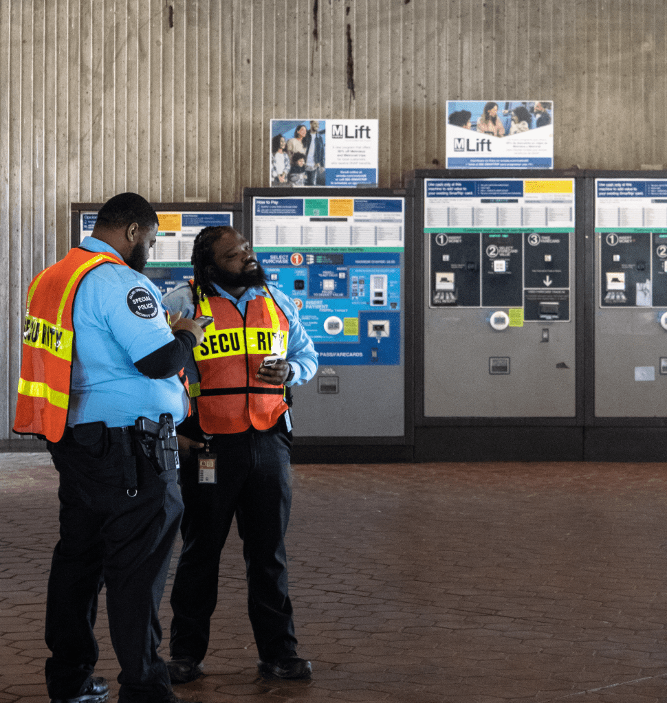 Getting off the train in Anacostia, the heady air of police presence is palpable and unavoidably different from the environment we started in. Outside of the train station an ambulance sits, ready.