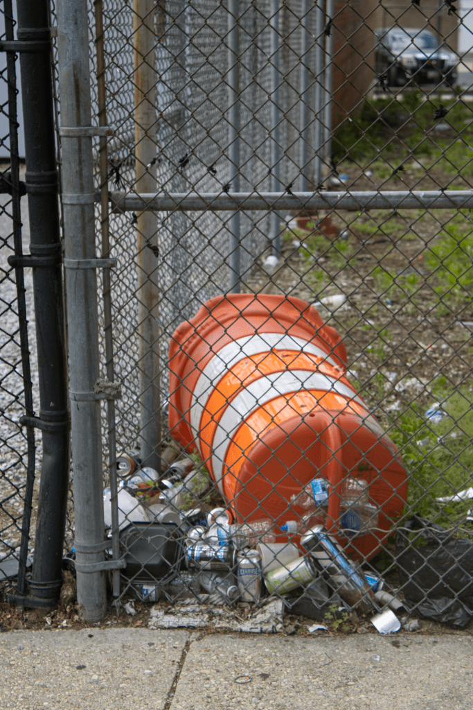 Every few squares of sidewalk are marked by piles of trash. “No Littering” and “Drug Free Zone” signs seem to have little effect on the soda cans, plastic water bottles, fast-food wrappers, cigarette butts and everything in between.